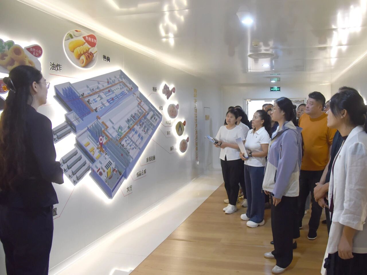 最初,参会人员一同参不雅了正大食物(青岛)无限公司的出产车间,深切进修正大食物先辈的办理经验和系统,愈加曲不雅的感触感染规范化出产的主要性。