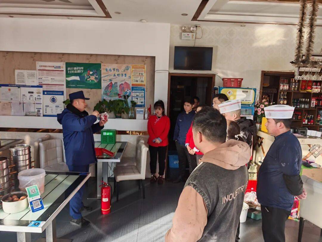正在消防平安宣传培训现场,救火员连系餐饮场合火警频发的典型案例,消防平安根本学问,沉点环绕火警现患排查要点、初期火警扑救技巧、应急分散逃生方式等焦点内容展开讲课。